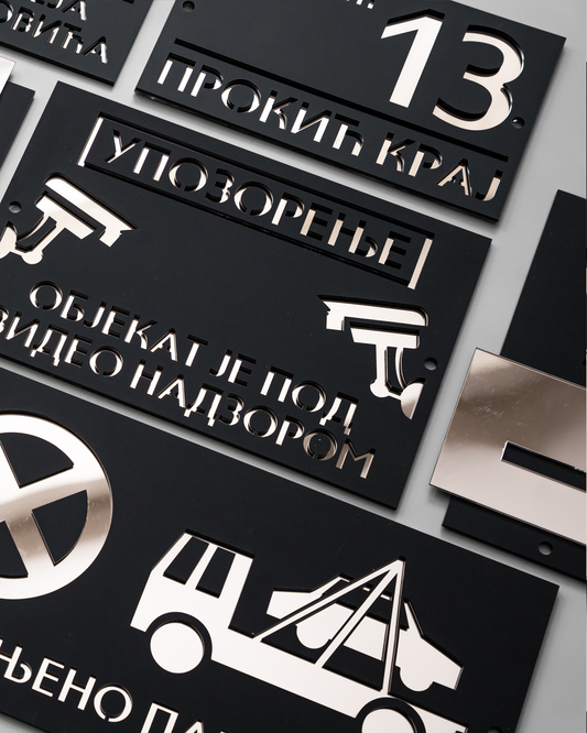 Pružamo visokokvalitetne pločice sa prezimenima, idealne za označavanje poštanskih sandučića, ulaznih vrata stanova i interfona. Naše pločice izrađujemo od izdržljivih materijala poput graverske plastike, klirita i kliritnog ogledala, koji osiguravaju dugotrajnost i estetski izgled.
